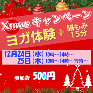 いつものヨガ体験がクリスマスキャンペーンでワンコイン500円で体験していただけます。