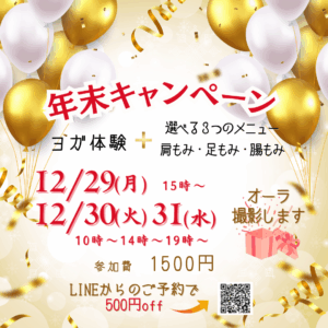 一年の締めくくりとして、自分の為の時間、癒しの時間をお過ごし下さい。